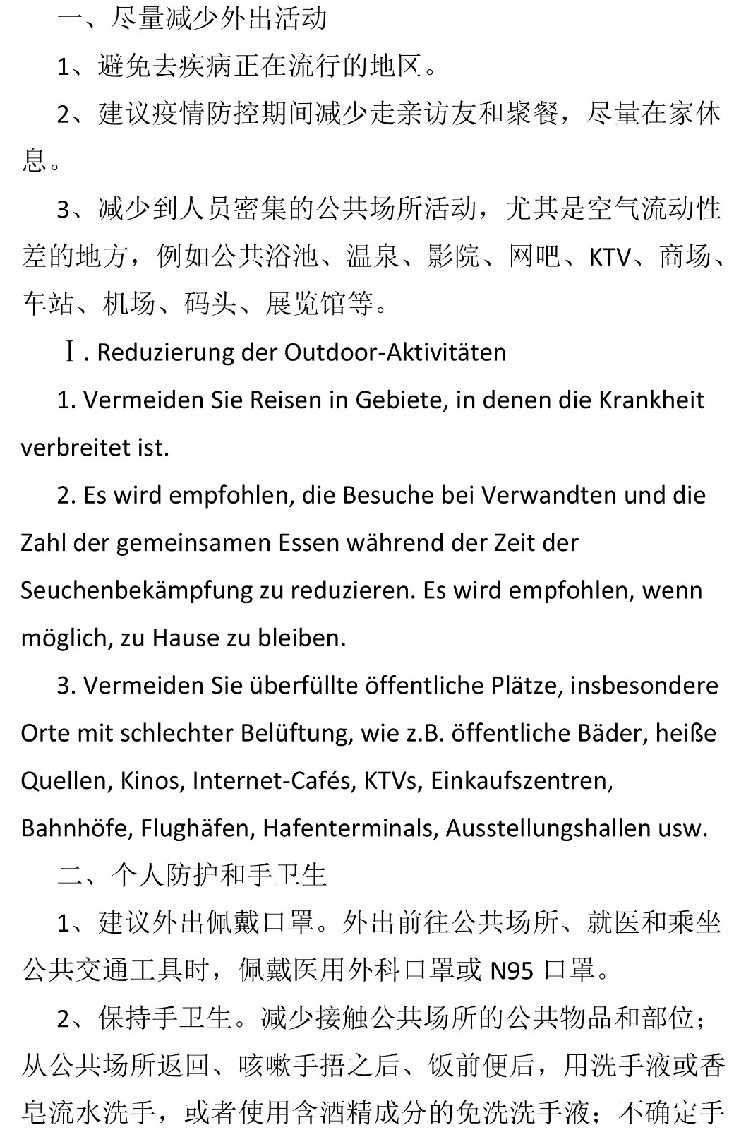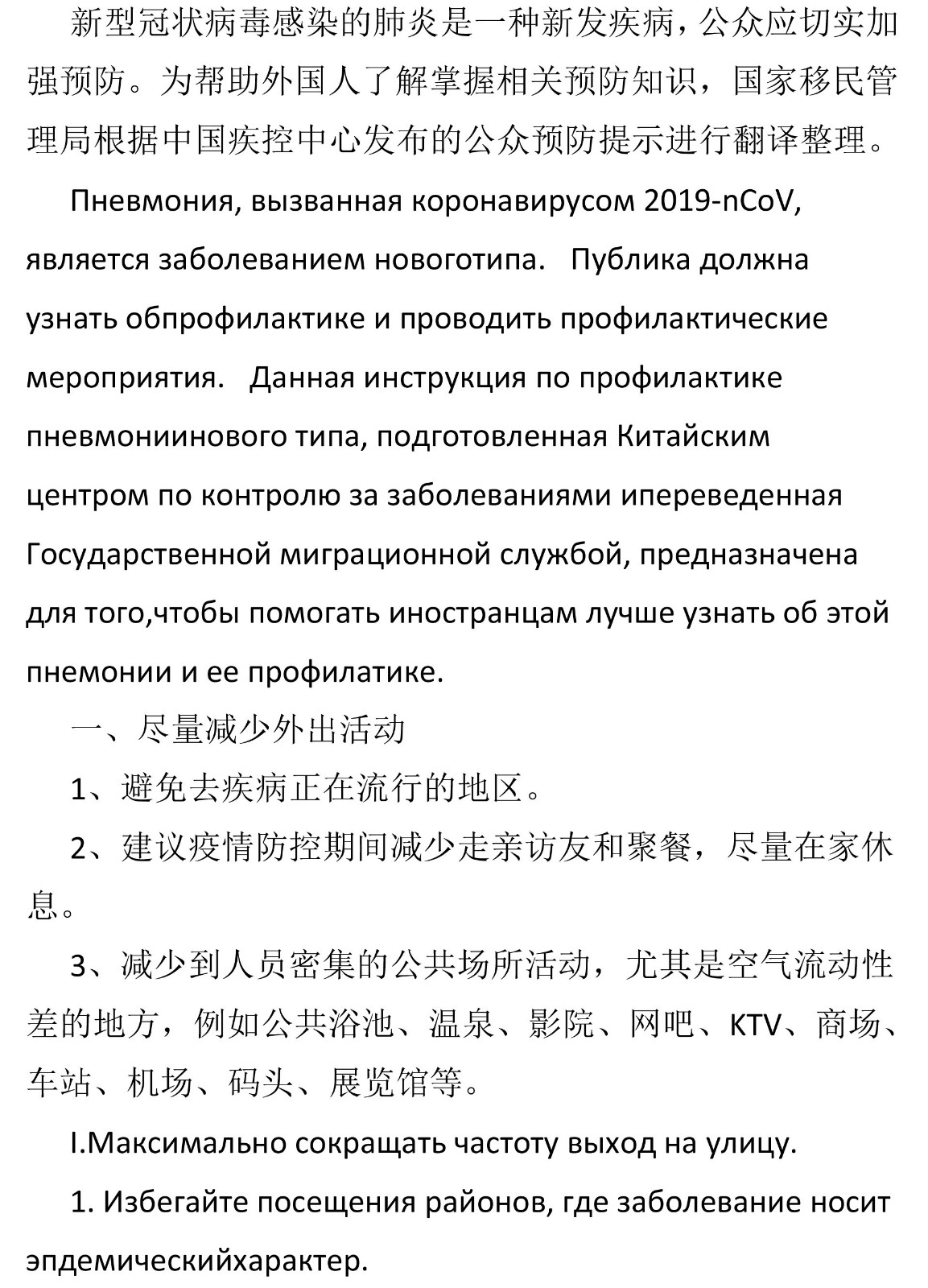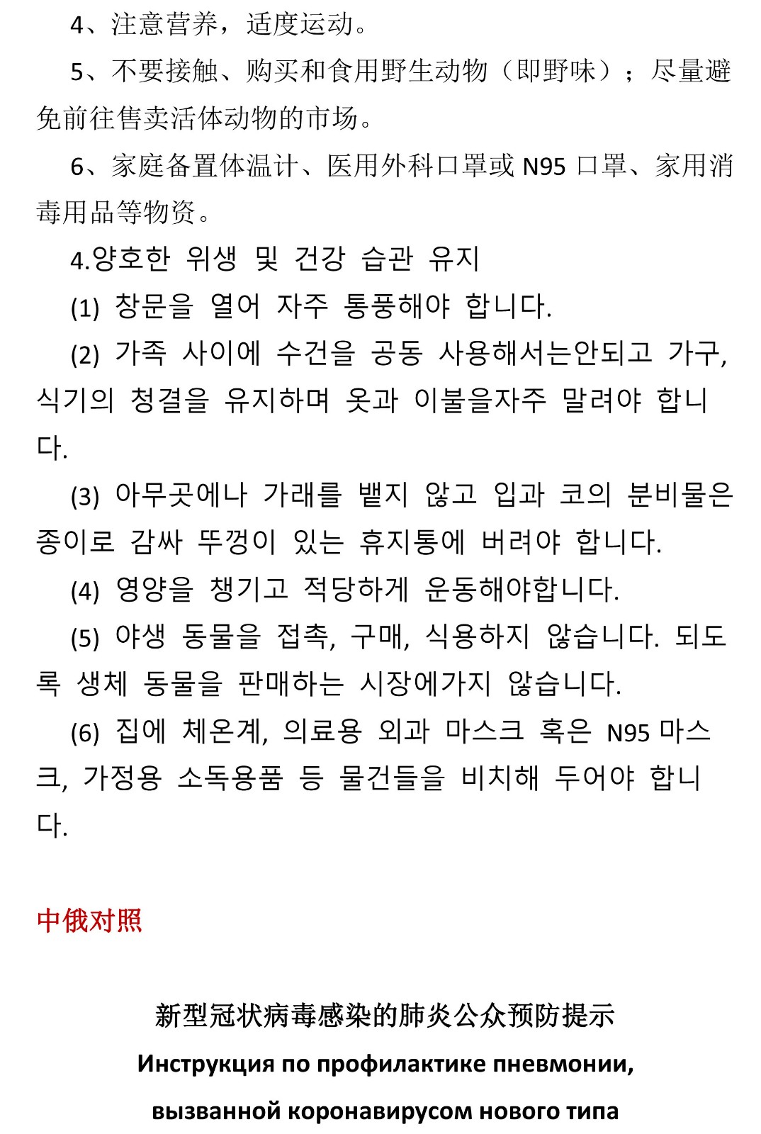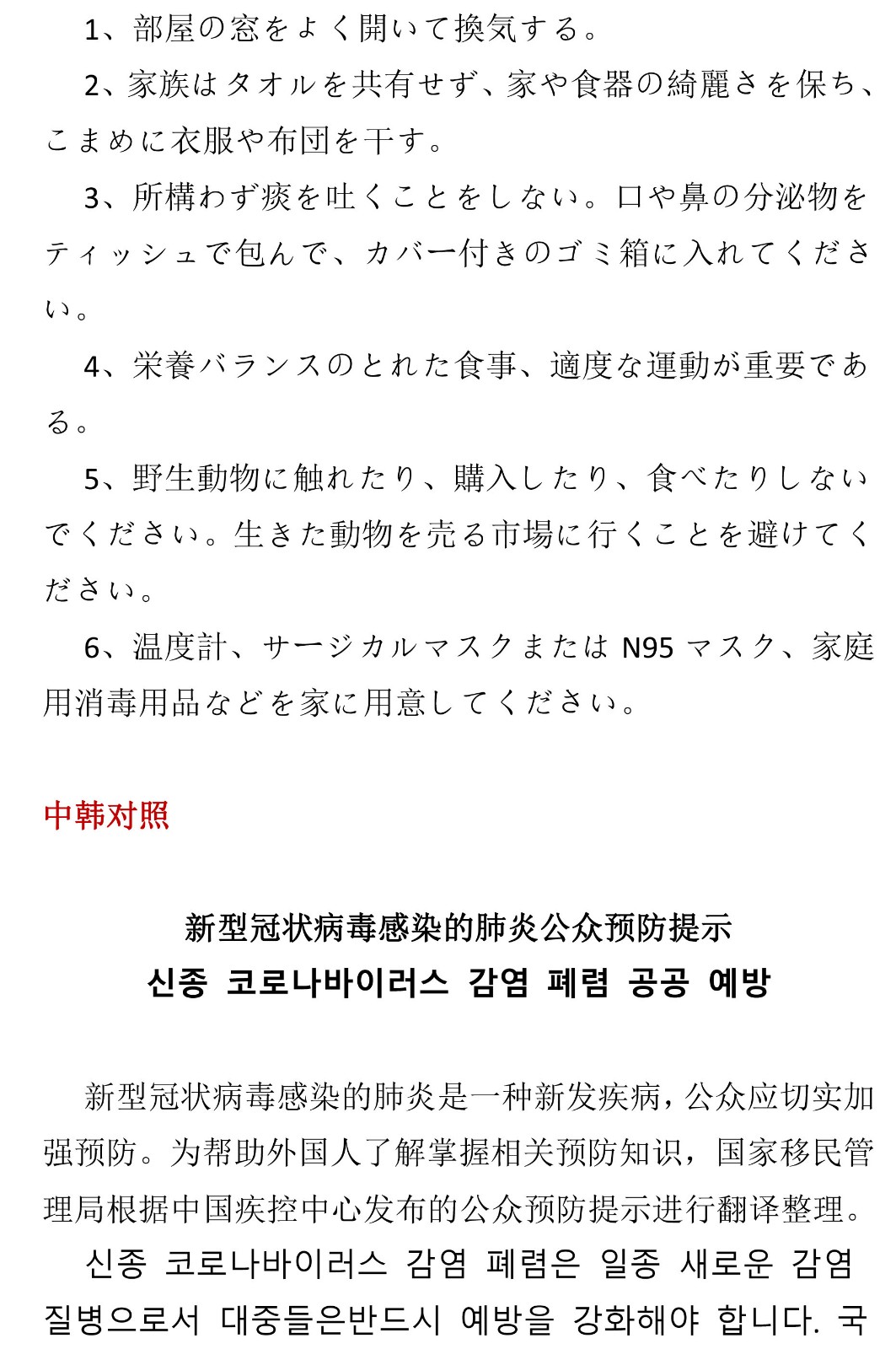 新型冠状病毒预防提示(中英、中日、中韩、中俄、中法、中德对照)