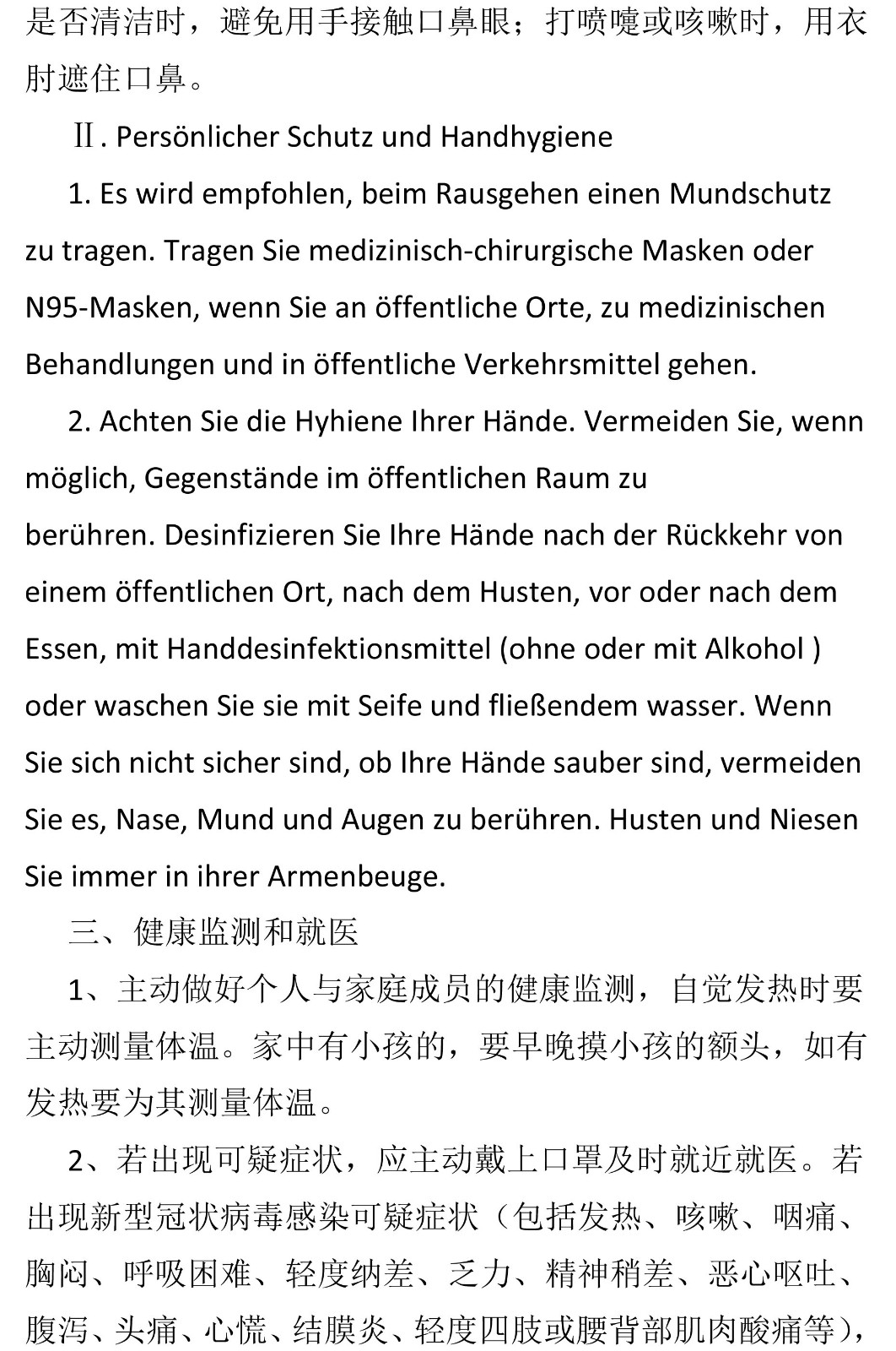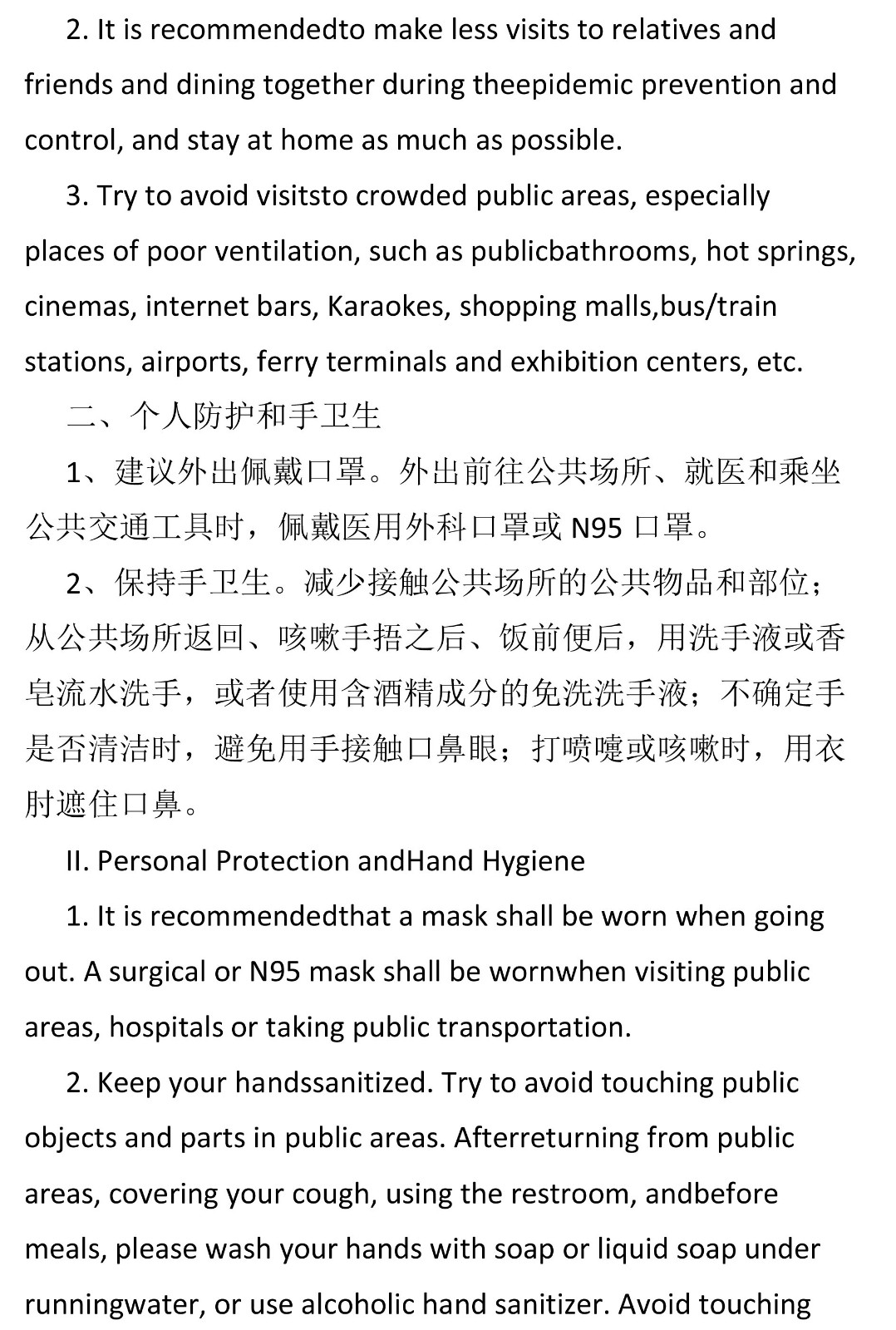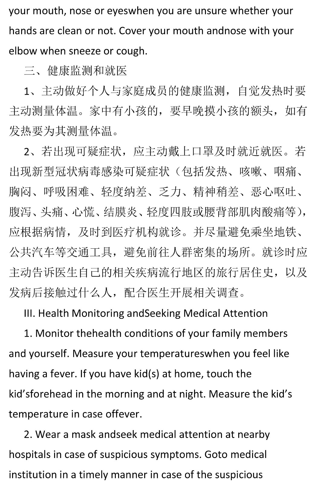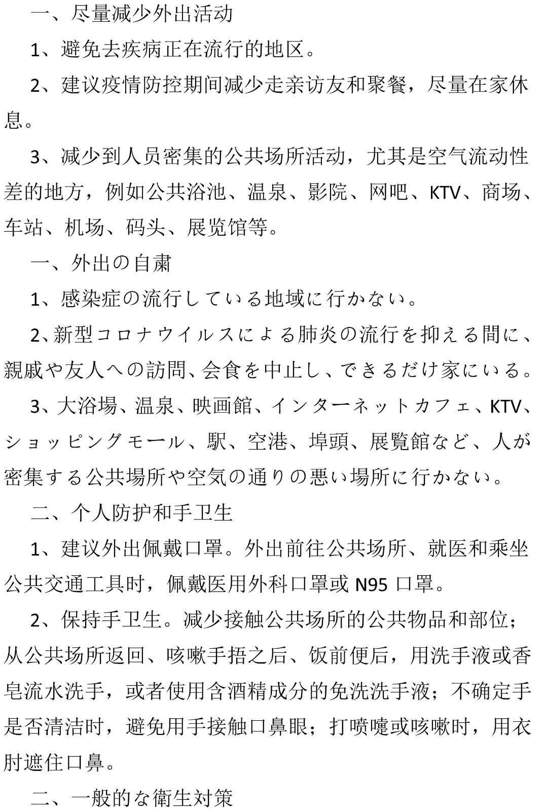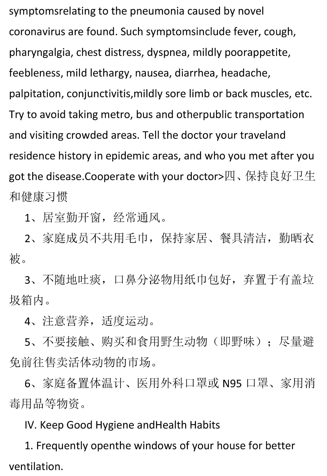 新型冠状病毒预防提示(中英、中日、中韩、中俄、中法、中德对照)