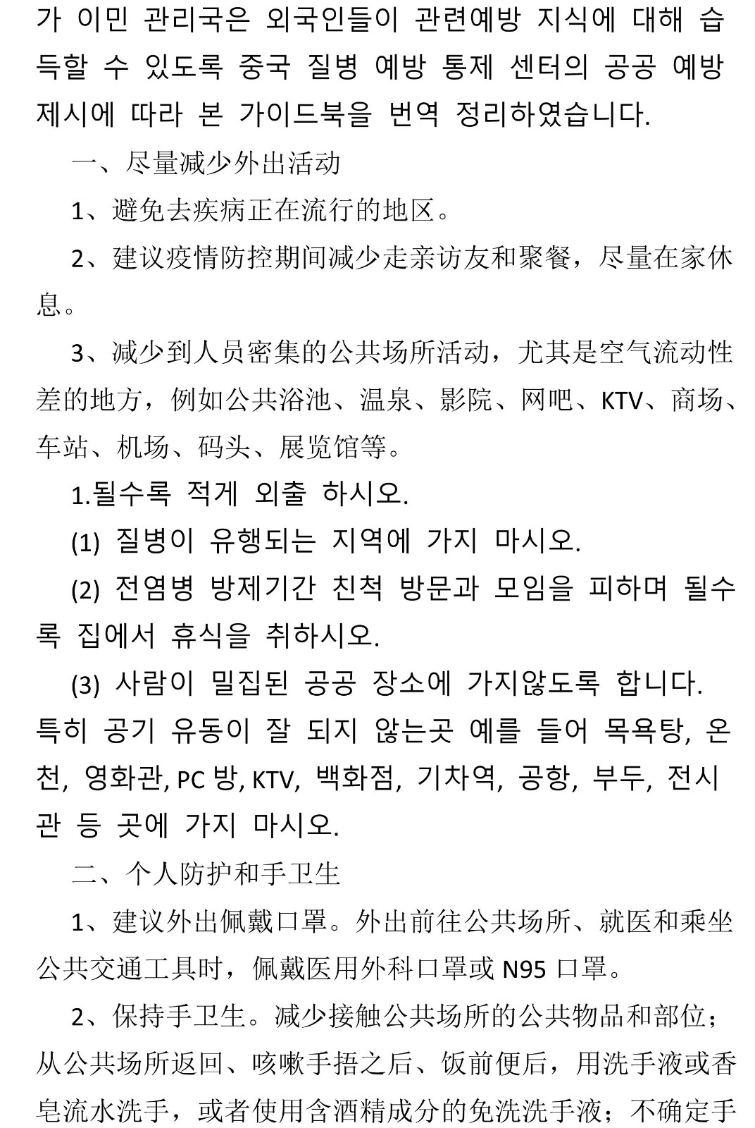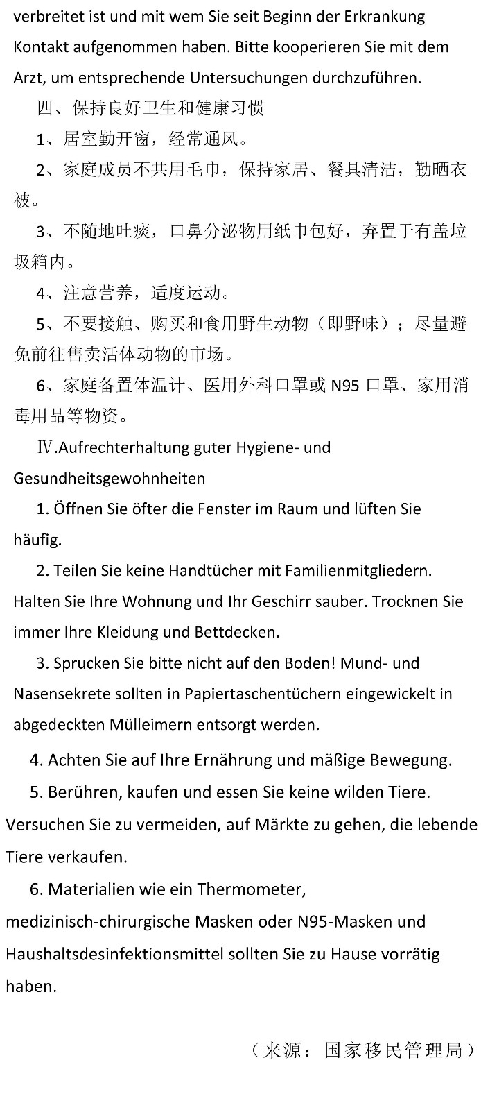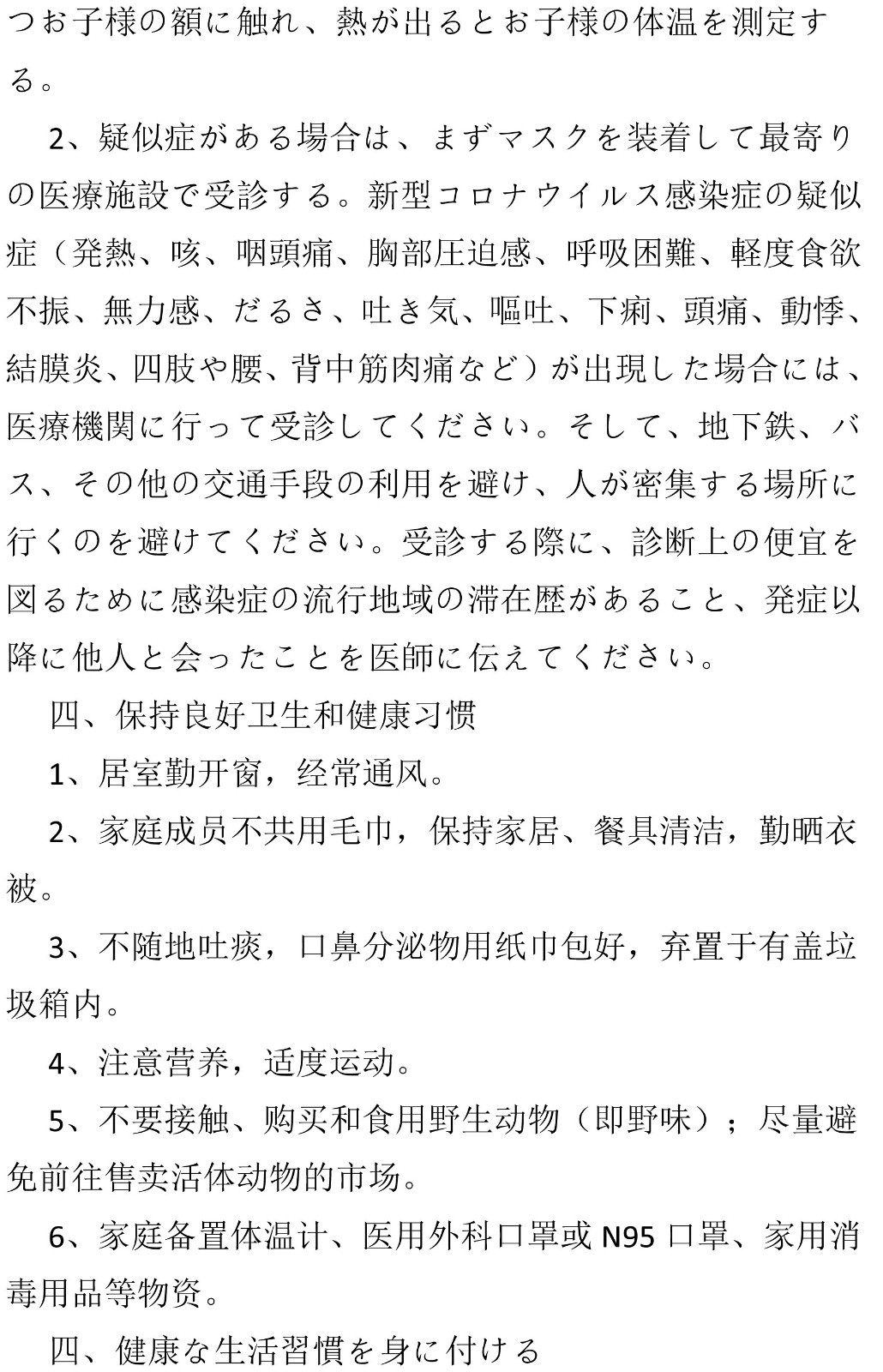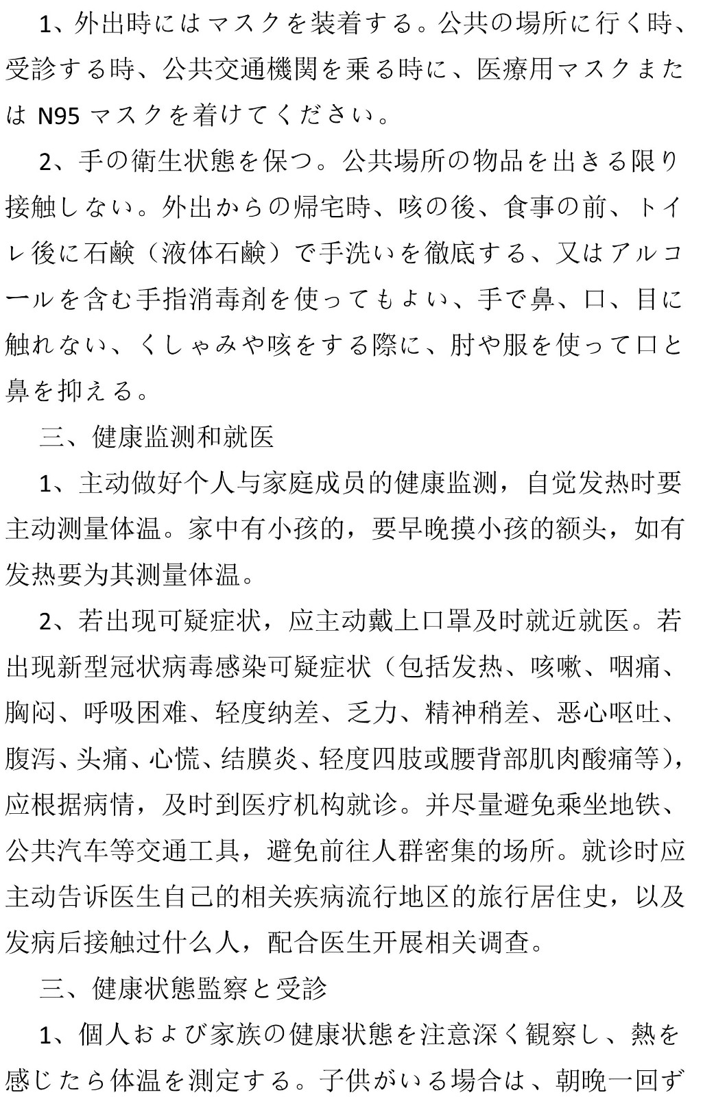 新型冠状病毒预防提示(中英、中日、中韩、中俄、中法、中德对照)