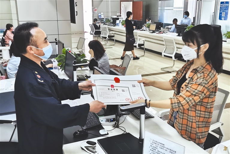 “现在方便了许多,只需要提交一次材料”,在该局行政许可服务中心,来自武汉的吴红英开办分公司,这次她只需要提供1套申报资料即可。她表示,过去开办企业,设立登记、公章刻制、发票申领、社保登记等环节,至少要准备五六套申报资料才能办完手续。