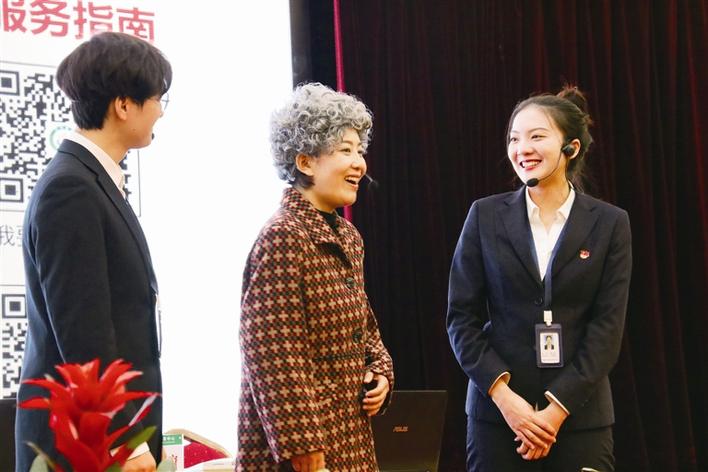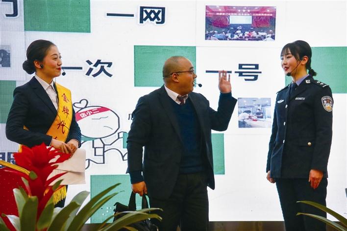 “宜人服务之窗”评选创新引入了情景模拟展示的形式,各参赛队窗口组织工作人员分别饰演“办事群众”和“窗口工作人员”,还原窗口面对不同办事群众、办事情景,提供规范服务、宜人服务,有效解决问题的真实服务场景。现场模拟办事情景包含窗口介绍、服务礼仪、业务水平、服务特色、现场答疑五个环节,专家组根据参赛窗口综合展示情况进行打分。