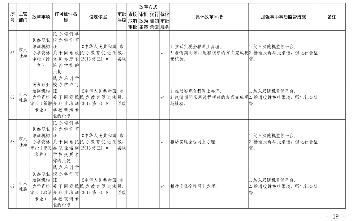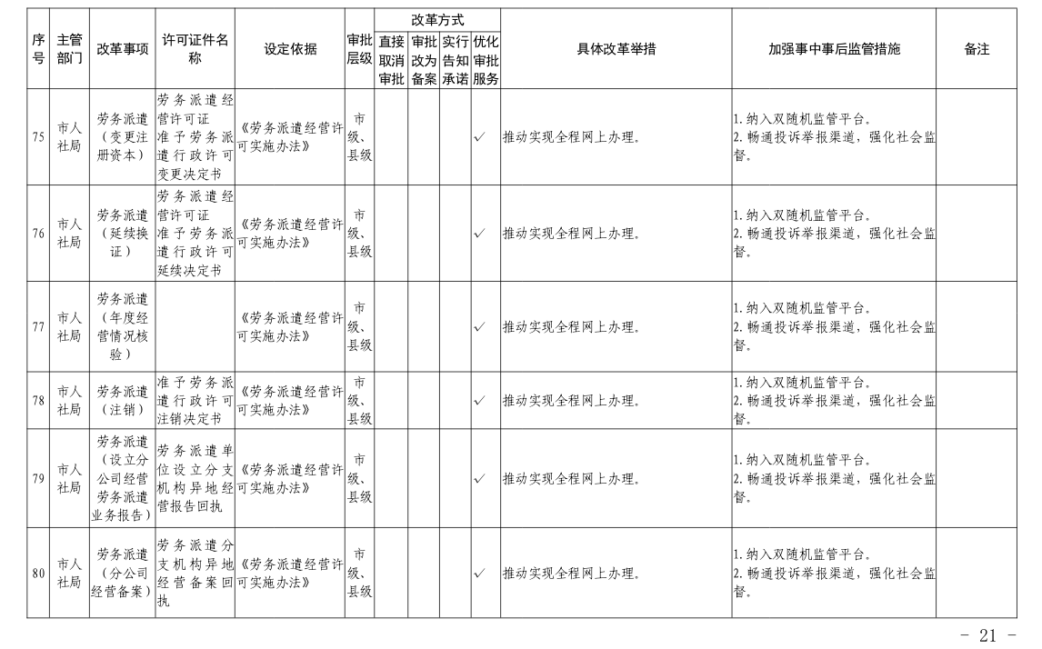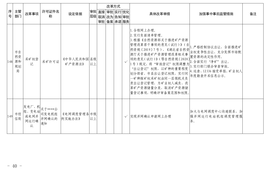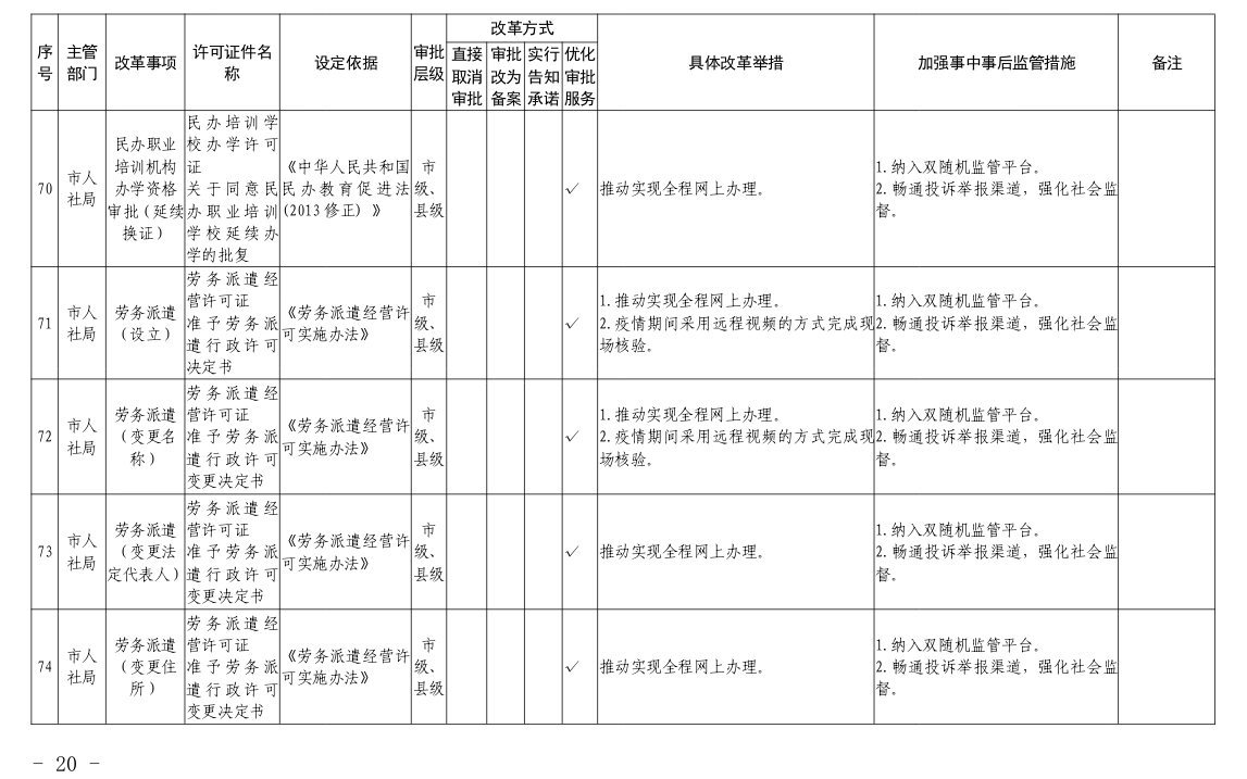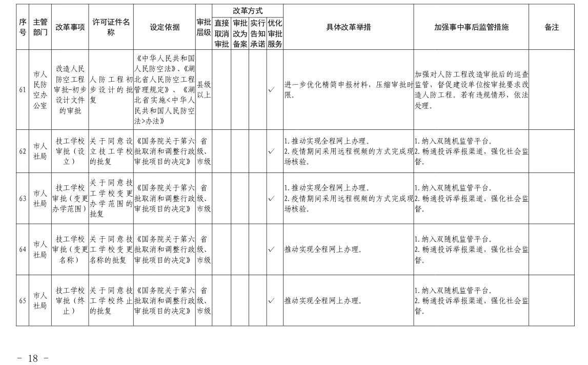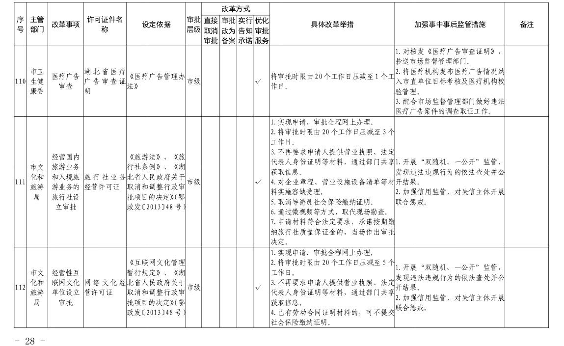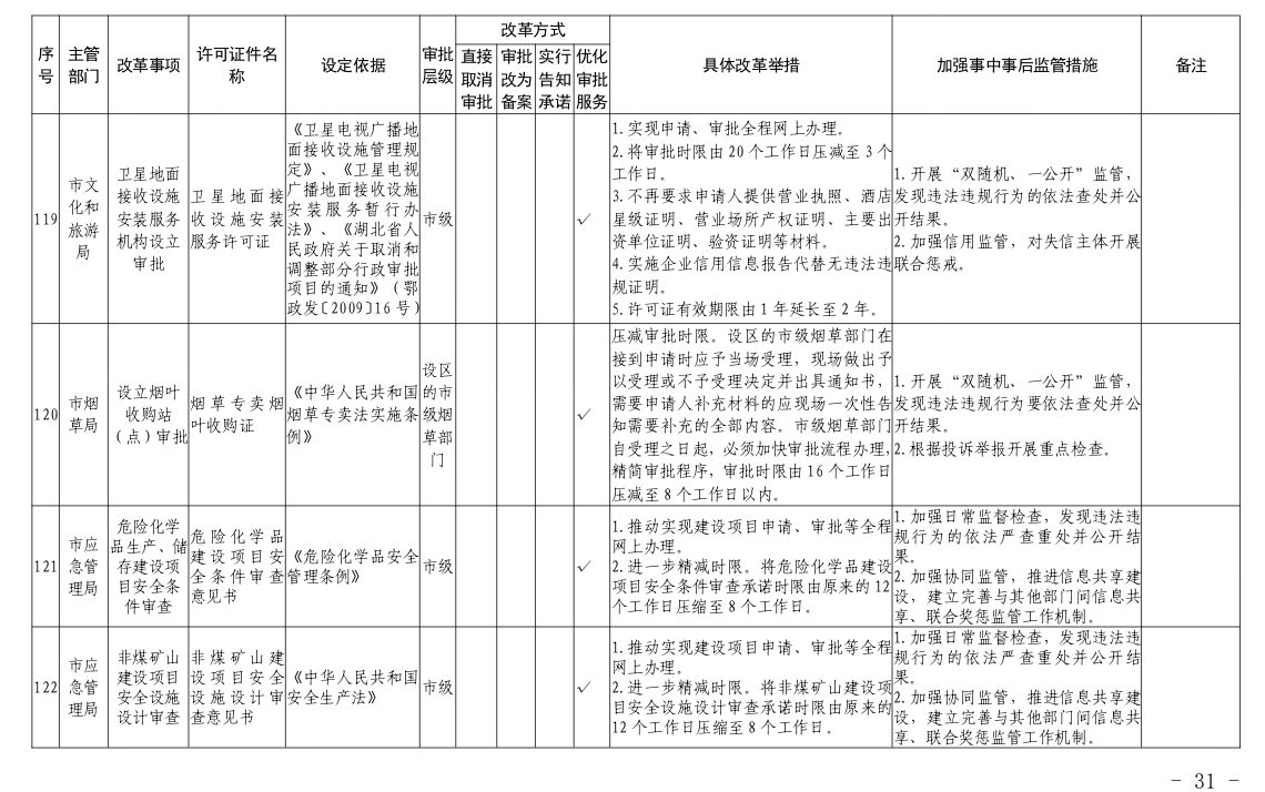 根据国务院和省政府关于“证照分离”改革任务部署和《市人民政府办公室关于印发宜昌市“证照分离”改革全覆盖工作实施方案的通知》(宜府办发〔2020〕37号)要求,经各部门申报、市市场监管局汇总审核、市司法局合法性审查,形成了宜昌市“证照分离”改革全覆盖审批事项清单,现将清单予以公布,请各部门对改革事项按照改革方式认真落实。