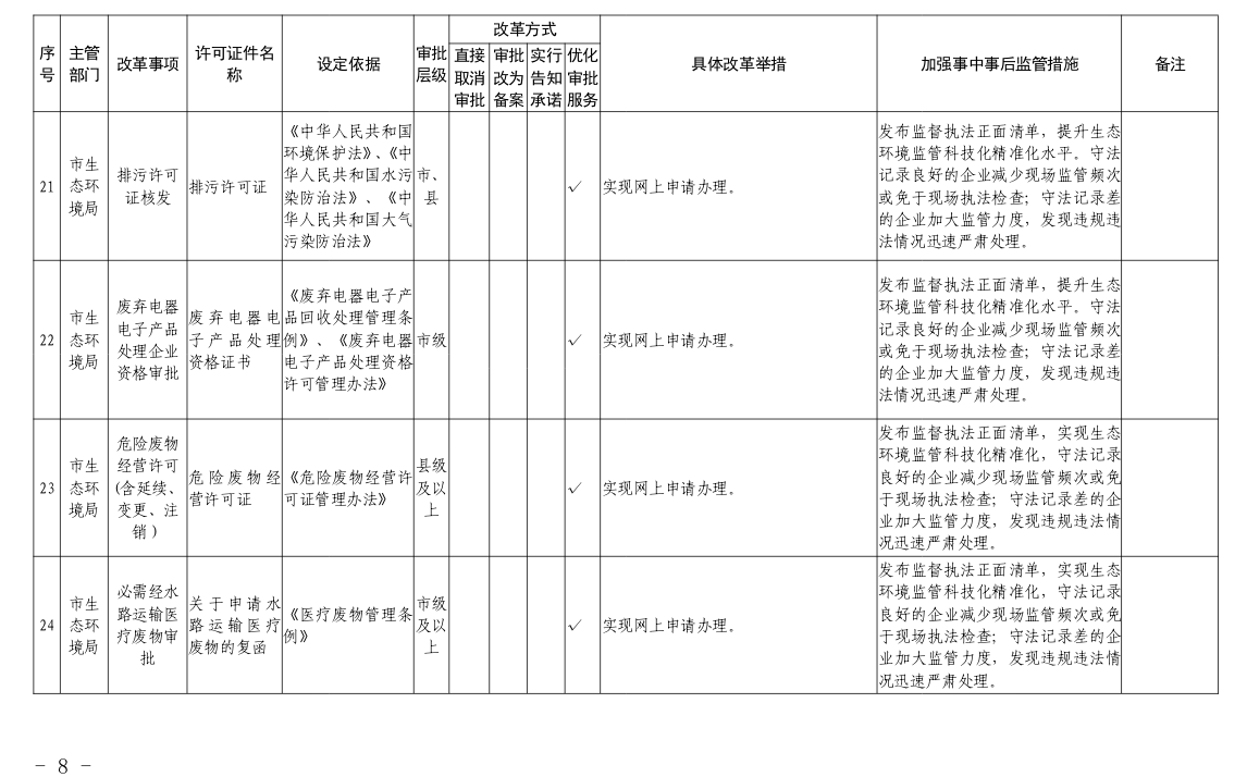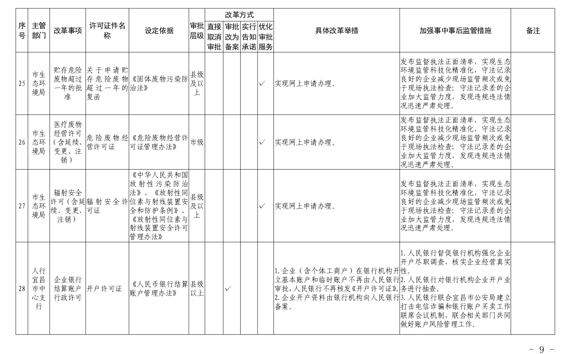 宜昌市推进政府职能转变和“放管服”改革协调小组办公室关于发布宜昌市“证照分离”改革全覆盖审批事项清单的通知